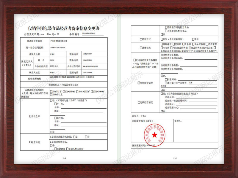 名稱: 僅銷售預包裝食品經營者備案信息變更表 類別: 榮譽證書