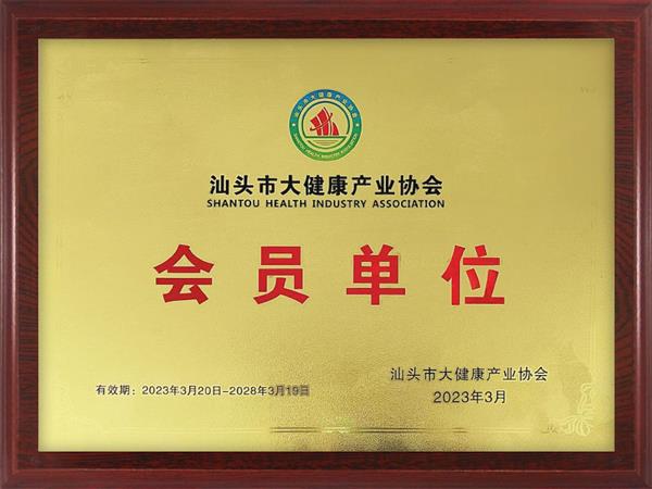 名稱: 汕頭市大健康產(chǎn)業(yè)協(xié)會會員單位 類別: 榮譽證書